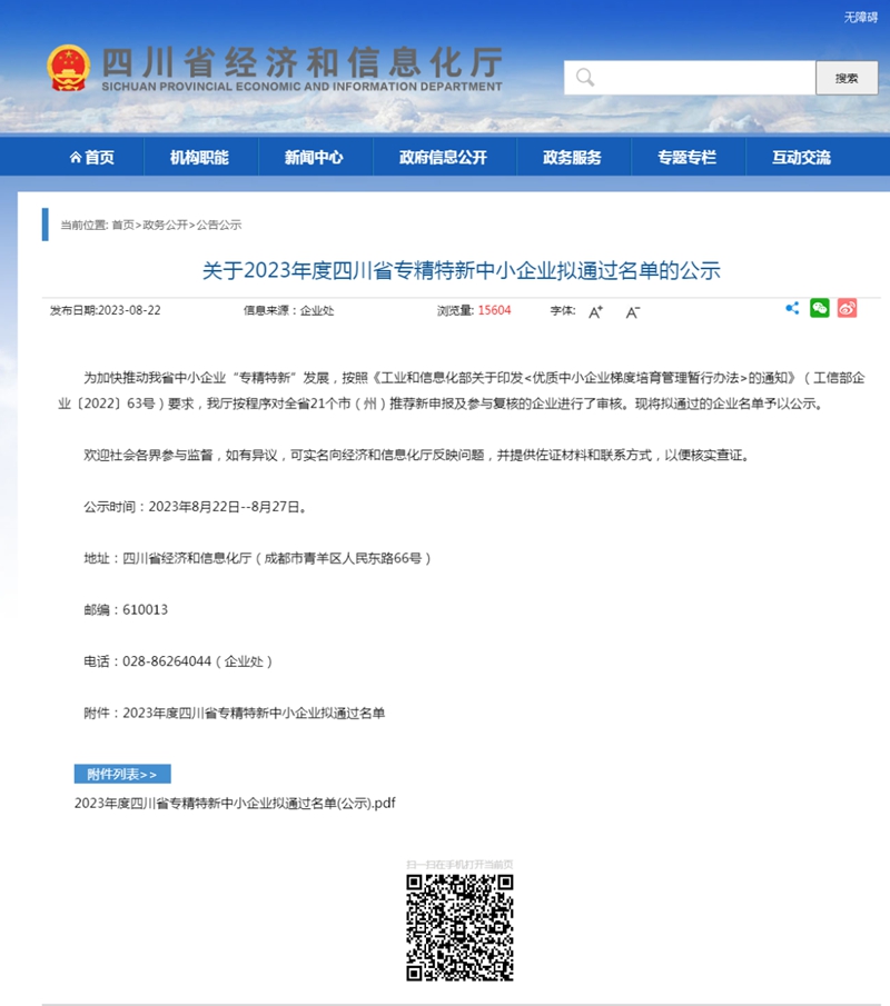 从四川省经济和信息化厅网站获悉