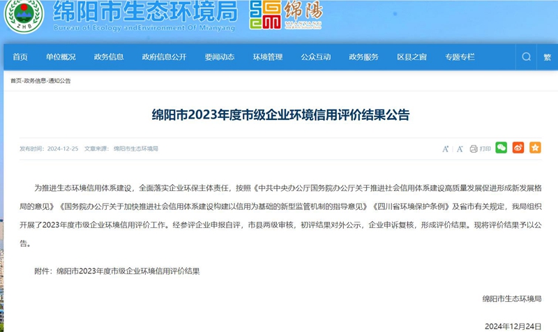 近日,从绵阳市生态环境局发布的关于《绵阳市2023年度市级企业环境信用评价结果公告》中获悉,国产91色获评绵阳市2023年度“环保诚信企业”, 国产91视频。